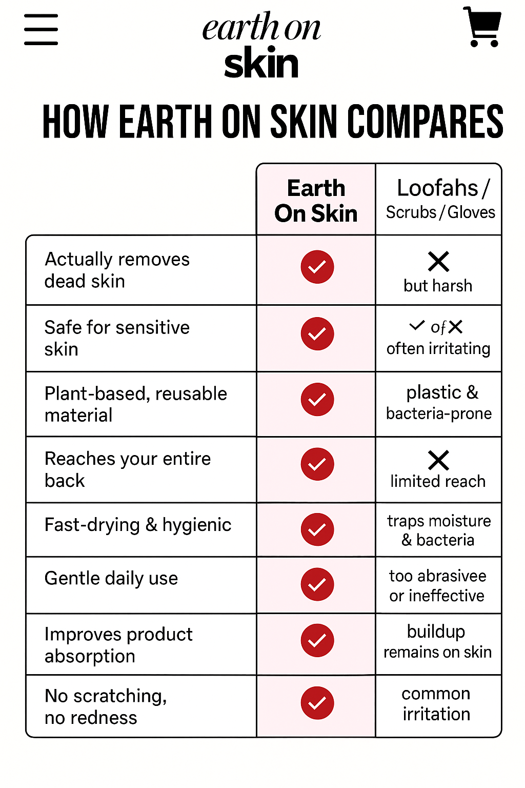 Forget harsh scrubs and loofahs. Our unique woven fiber design removes buildup without damaging the skin barrier.